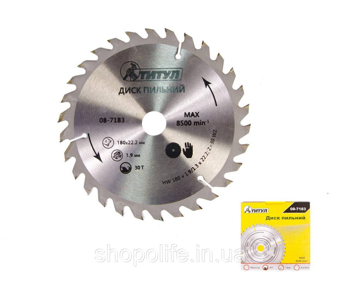 Диск пильный для дерева ТИТУЛ з твердосплавними напайками 180х22.2х30Т адаптер 22.2-20 08-7183 SPL