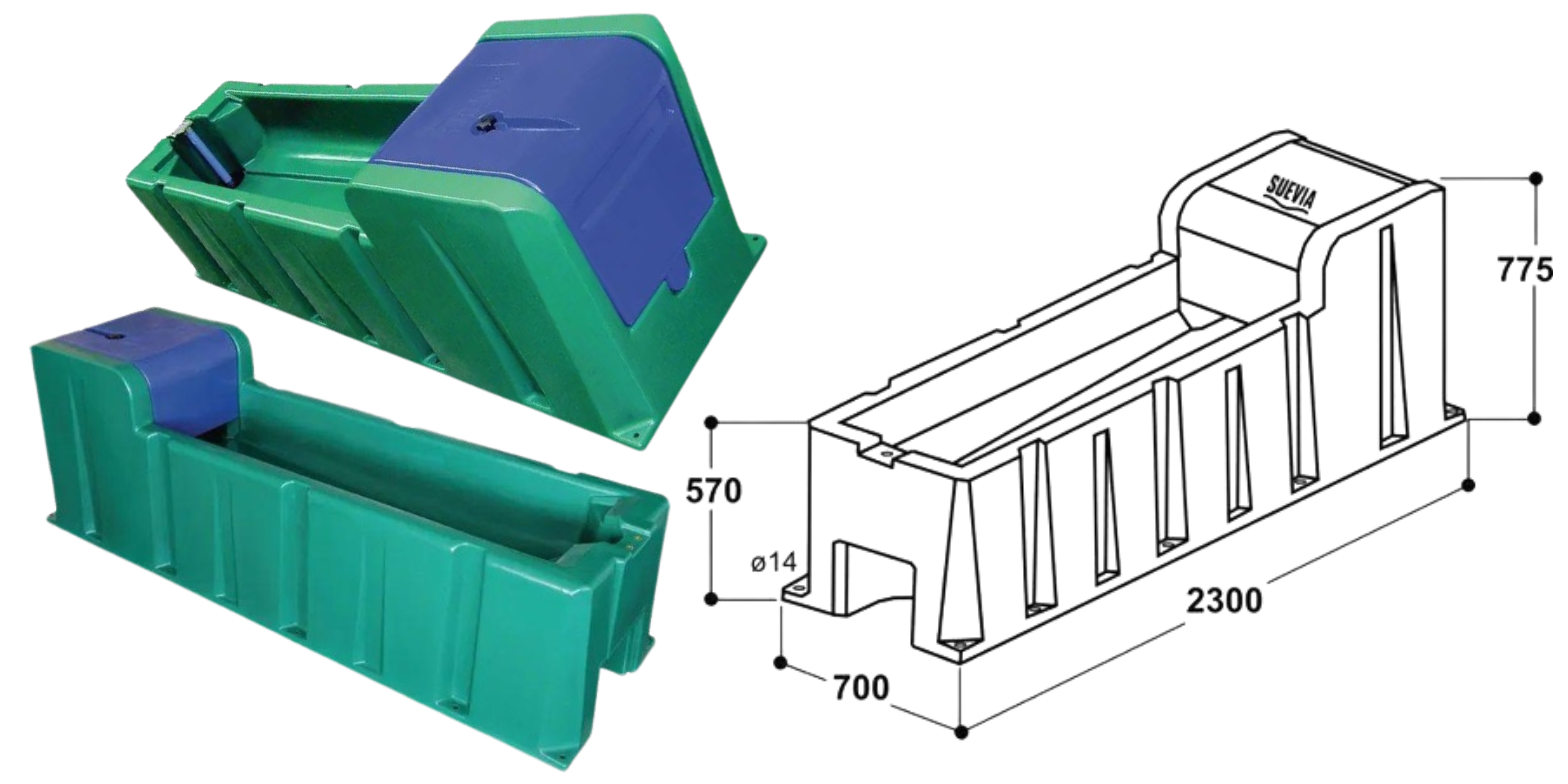 Зручна групова поїлка з підігрівом для великої рогатої худоби. Вода підводиться за допомогою труби, з'єднання з трубою - різьба на 3/4". Дана напувалка прискорює процес пиття води тваринами, автоматизує догляд за живністю та полегшує працю працівників. Поїлка з похилим дном і великим зливним отвором забезпечує швидкий злив і очищення поїлки. Зливний отвір закривається пробкою. Витрата 40 літрів/хвилину при тиску 3 атм. Оснащена підігрівом води в зимовий період Напруга живлення підігрівача 24В (живиться від понижувального трансформатора, що входить до комплекту) Увімкнення та вимкнення підігріву - ручне Поїлка забезпечена підігрівальним кабелем для запобігання замерзанню лінії подачі води. Напруга від мережі 220В Потужність підігрівача 230 Вт Встановлено тепловий захист трансформатора, а також запобіжник. Легкість чищення, для зручності чищення передбачено зливний отвір. Морозостійкість. Забезпечує температуру води в 4-5 градусів взимку. Під час літньої спеки вода в поїлці не так нагрівається. Відсутність гострих кутів скасовує ризик травми худоби. Міцна конструкція, витримує суворі умови експлуатації як від погоди, так і від худоби. Поїлка влаштована таким чином, щоб забезпечувати легкий доступ до води. Загальна ємність води 160л. Довжина поїлки 230 см, висота 57-77.5 см, ширина 70 см