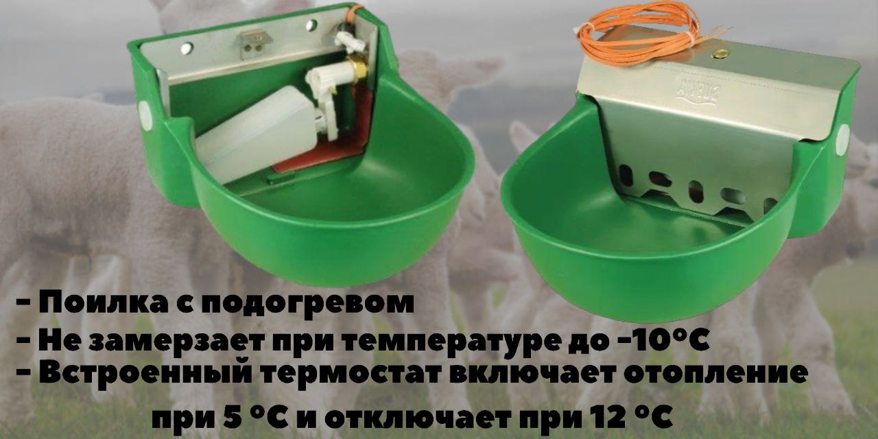 Зручна пластикова чашкова поїлка з підігрівом для овець кіз та інших тварин, прискорює процес пиття води тваринами, автоматизує догляд за живністю та полегшує працю працівників. Вода підводиться за допомогою труби, латунний приєднувальний патрубок R 1/2" - на вибір праворуч або ліворуч. Чашкова поїлка для сільськогосподарських тварин встановлюється в будь-якому зручному місці чи то клітки, чи то пасовища. Поплавковий клапан зі швидким подаванням води. Знімна кришка поплавка з нержавіючої сталі. Постійний рівень води - просте регулювання. З пробкою очисного отвору для швидкого спустошення. Завдяки вбудованому нагрівальному елементу (24 В, 20 Вт) поїлка не замерзає за температури до -10 °C (у ділянці клапана). Вбудований термостат вмикає опалення за 5 °C і вимикає за 12 °C. Напувалка дає змогу напоїти до 20 голів худоби, що істотно полегшує догляд та утримання тварин. Завдяки чому Ви отримуєте максимально чисту і здорову атмосферу в стаді. Поїлка влаштована таким чином, щоб забезпечувати легкий доступ до води. Миска для води з плаваючою кулею може підтримувати певний рівень води, тож поголів'я питної води більш рясне, більш комфортне. Поїлка з язичком - вода набирається в поїлку при натисканні, використовується як індивідуальна поїлка для худоби.