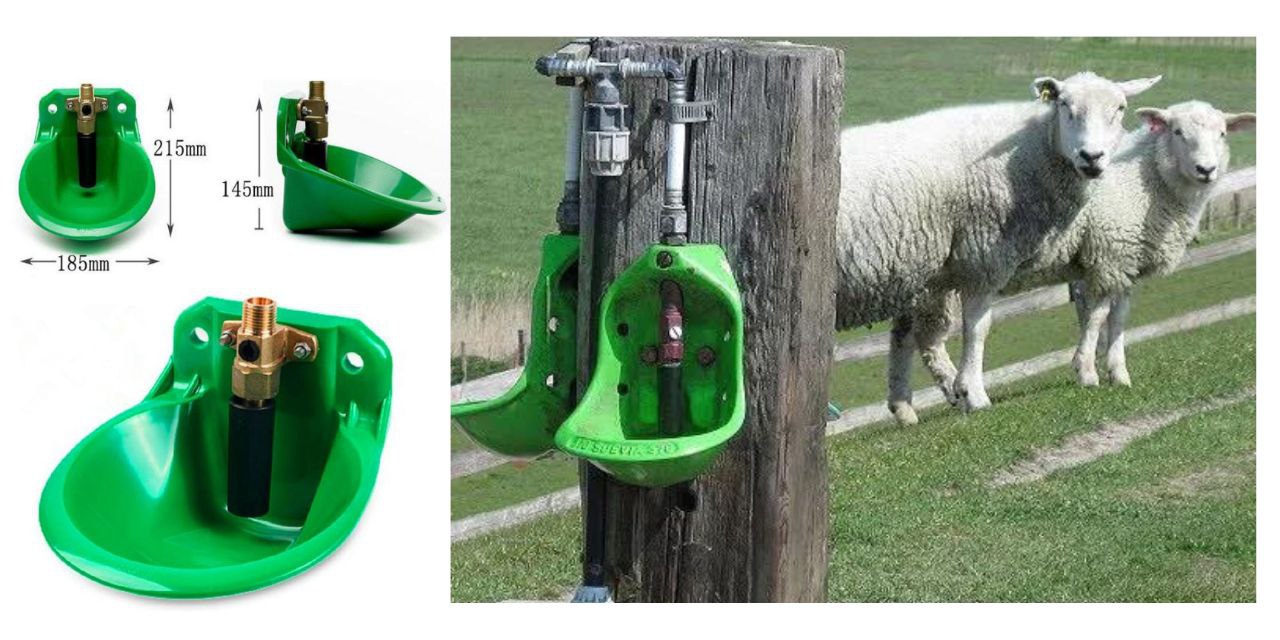 Зручна пластикова чашкова поїлка для овець і кіз з кріпленням на трубу або клітку. Вода підводиться за допомогою труби, з'єднання з трубою - різьблення на 1/2". Чашкова поїлка для сільськогосподарських тварин встановлюється до стіни або клітки з переходом на опуск і через шланг до водопроводу. Залежно від віку тварин і виду поїлок, їх встановлюють на потрібній висоті для зручності користування. Поїлка дає змогу запобігти зайвому потраплянню води на підстилку, намоканню її та загниванню. Завдяки чому Ви отримуєте максимально чисту і здорову атмосферу в клітках. Поїлка влаштована таким чином, щоб забезпечувати легкий доступ до води.