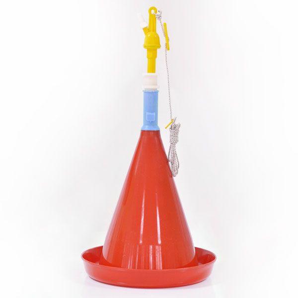 Колокольна поїлка призначена для забезпечення питної води для будь якої свійської птиці, стада бройлерів чи підрощених індиків. Вона розрахована на обслуговування 90-100 голів дорослої птиці. Діаметр поїлки - 37 см, висота - 67 см. У комплекті йде надійний трос для підвішування. Поїлка оснащена регулятором рівня води, що дозволяє точно контролювати подачу. Робочий тиск: мінімум 0,2 барів, максимум 0,5 барів. Завдяки надійному пластиковому корпусу, поїлка не потребує частого обслуговування. Вага поїлки становить 1,5 кг.