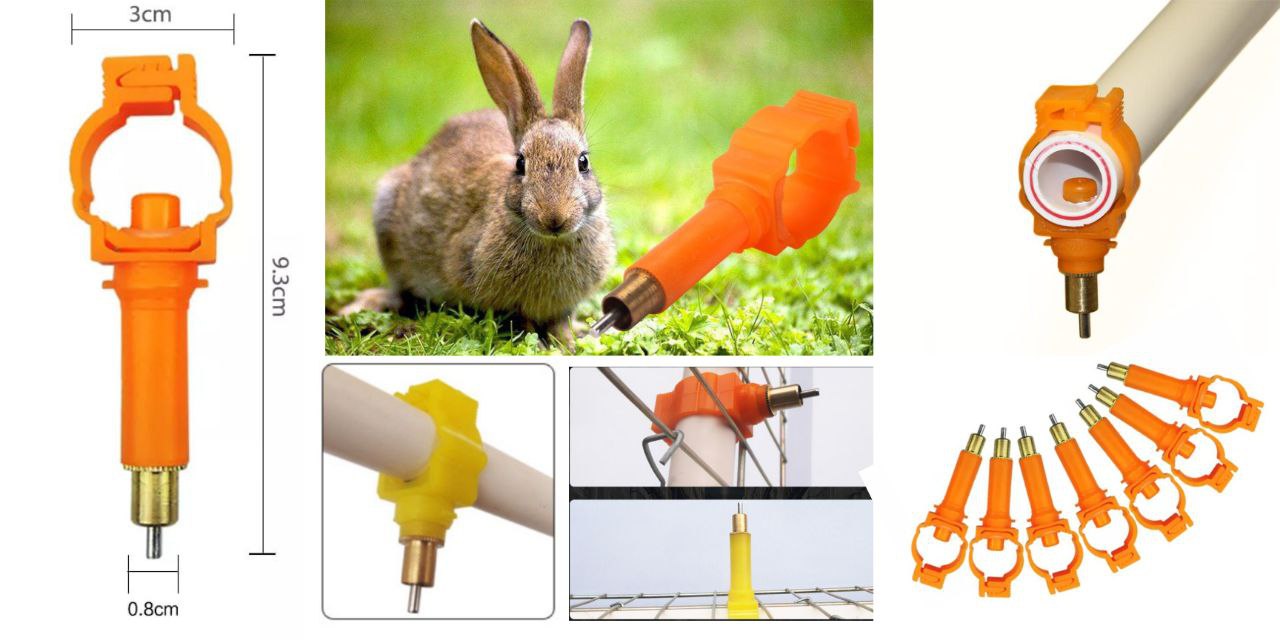 Зручна металева ніпельна поїлка для кроликів, нутрій і шиншил з кріпленням на трубу. Виготовлена поїлка з якісного металу та пластику, що має гарну міцність. Вода підводиться за допомогою трубопроводу, діаметр якого має бути 25 мм. Поїлка дає змогу запобігти зайвому потраплянню води на підстилку, намоканню її та загниванню. Завдяки чому Ви отримуєте максимально чисту і здорову атмосферу в клітці. Поїлка влаштована таким чином, щоб забезпечувати легкий доступ до води. Вода з неї ллється лише тоді, коли кролик п'є.