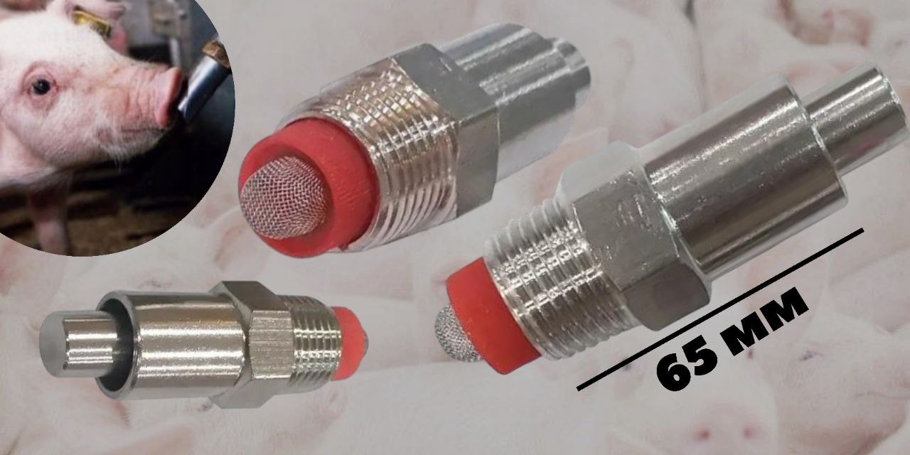 Зручна металева ніпельна поїлка для свиней з кріпленням на трубу або клітку. Вода підводиться за допомогою труби, з'єднання з трубою - різьблення на 1/2» . Ніпельна поїлка для свиней встановлюється до стіни або клітки з переходом на опуск і через шланг до водопроводу. Клапан механізму кнопкової поїлки значно скорочує втрати і розбризкування води. Так само скорочуються втрати води, коли тварини починають гратися з поїлкою. При використанні кнопкових автопоїлок економія води досягає 30% щодо інших видів поїлок. Вимоги до розміщення: Поїлка для свиней встановлюється в регулюючі опори на 1 або 2 поїлках, або під кріплення для поїлок 1/2 з переходом на опуск. Установку поїлки роблять там, де свині випорожняються або біля корита. Закріплювати поїлку необхідно під кутом 15°-45° - так свиням буде зручніше користуватися, а також зменшиться розбризкування води тваринами. Залежно від віку свиней і виду поїлок, їх встановлюють на потрібній висоті для зручності користування Залежно від віку свиней і виду поїлок, їх встановлюють на потрібній висоті для зручності користування, є можливість дозовано вводити ліки і вітаміни. Поїлка дає змогу запобігти зайвому потраплянню води на підстилку, намоканню її та загниванню. Завдяки чому Ви отримуєте максимально чисту і здорову атмосферу в клітках. Поїлка влаштована таким чином, щоб забезпечувати легкий доступ до води.