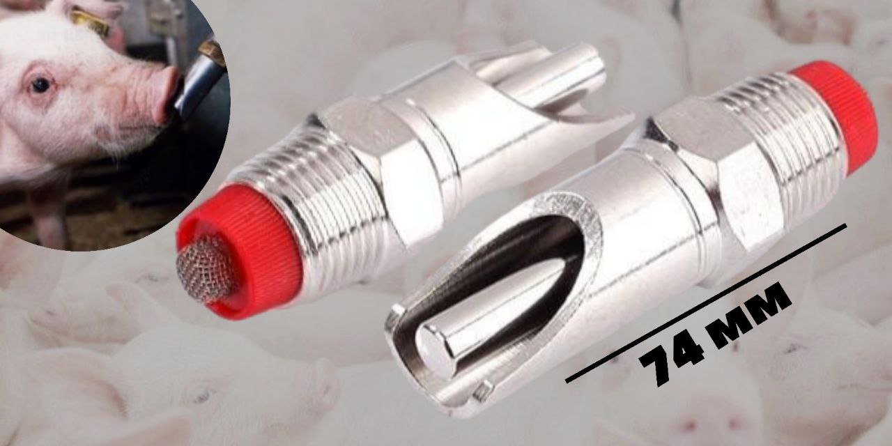 Зручна металева ніпельна поїлка для поросят з кріпленням на трубу або клітку. Вода підводиться за допомогою труби, з'єднання з трубою - різьблення на 1/2» . Ніпельна поїлка для свиней встановлюється до стіни або клітки з переходом на опуск і через шланг до водопроводу. Клапан механізму кнопкової поїлки значно скорочує втрати і розбризкування води. Так само скорочуються втрати води, коли тварини починають гратися з поїлкою. При використанні кнопкових автопоїлок економія води досягає 30% щодо інших видів поїлок. Вимоги до розміщення: Поїлка для свиней встановлюється в регулюючі опори на 1 або 2 поїлках, або під кріплення для поїлок 1/2 з переходом на опуск. Установку поїлки роблять там, де свині випорожняються або біля корита. Закріплювати поїлку необхідно під кутом 15°-45° - так свиням буде зручніше користуватися, а також зменшиться розбризкування води тваринами. Залежно від віку свиней і виду поїлок, їх встановлюють на потрібній висоті для зручності користування Залежно від віку свиней і виду поїлок, їх встановлюють на потрібній висоті для зручності користування, є можливість дозовано вводити ліки і вітаміни. Поїлка дає змогу запобігти зайвому потраплянню води на підстилку, намоканню її та загниванню. Завдяки чому Ви отримуєте максимально чисту і здорову атмосферу в клітках. Поїлка влаштована таким чином, щоб забезпечувати легкий доступ до води.