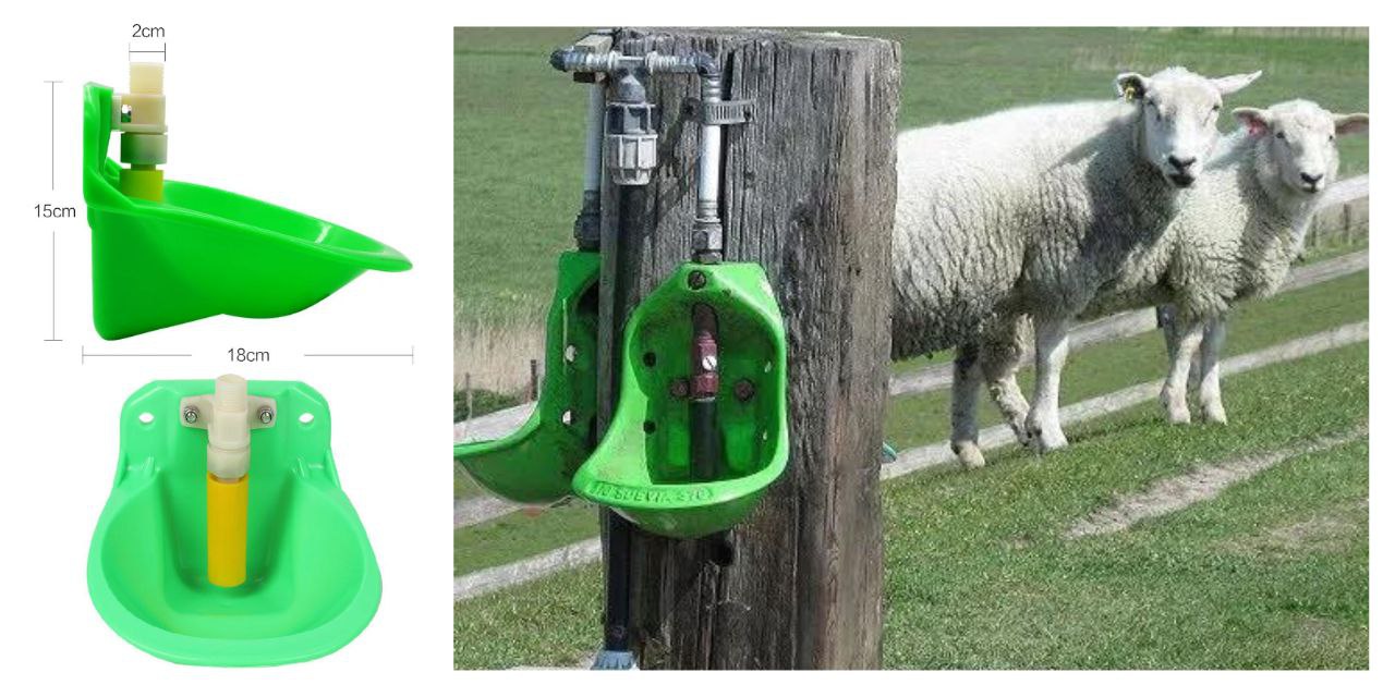 Зручна пластикова чашкова поїлка для овець і кіз з кріпленням на трубу або клітку. Вода підводиться за допомогою труби, з'єднання з трубою - різьблення на 1/2". Чашкова поїлка для сільськогосподарських тварин встановлюється до стіни або клітки з переходом на опуск і через шланг до водопроводу. Залежно від віку тварин і виду поїлок, їх встановлюють на потрібній висоті для зручності користування. Поїлка дає змогу запобігти зайвому потраплянню води на підстилку, намоканню її та загниванню. Завдяки чому Ви отримуєте максимально чисту і здорову атмосферу в клітках. Поїлка влаштована таким чином, щоб забезпечувати легкий доступ до води.